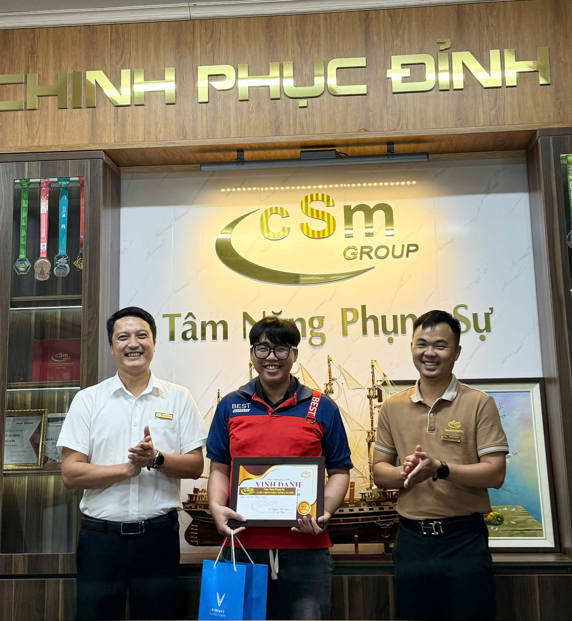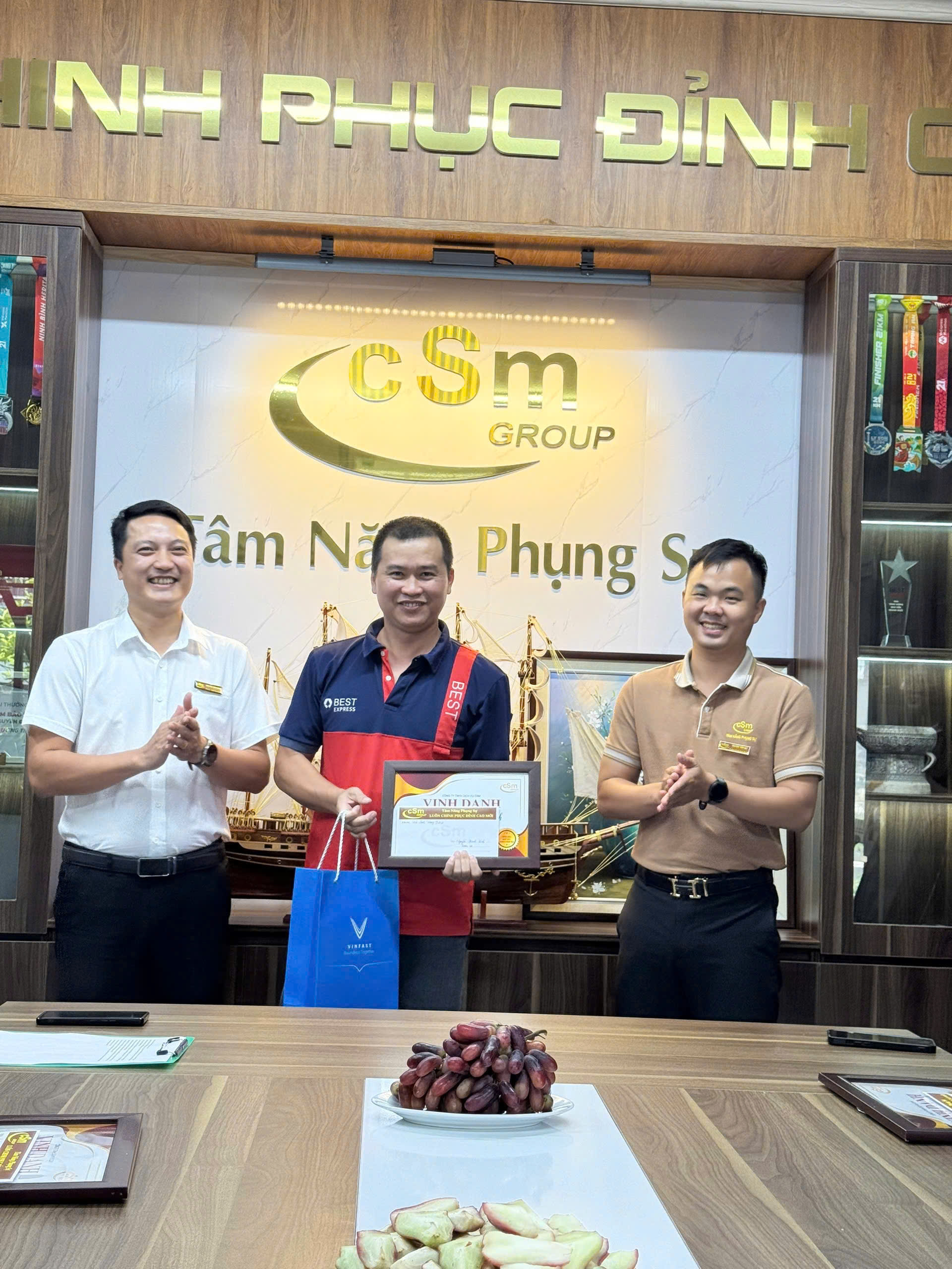 Ban Lãnh đạo công ty đã gửi lời chúc mừng, đồng thời bày tỏ niềm tự hào khi tập thể CSM luôn có những cá nhân tận tâm, bền bỉ và lan tỏa tinh thần tích cực.